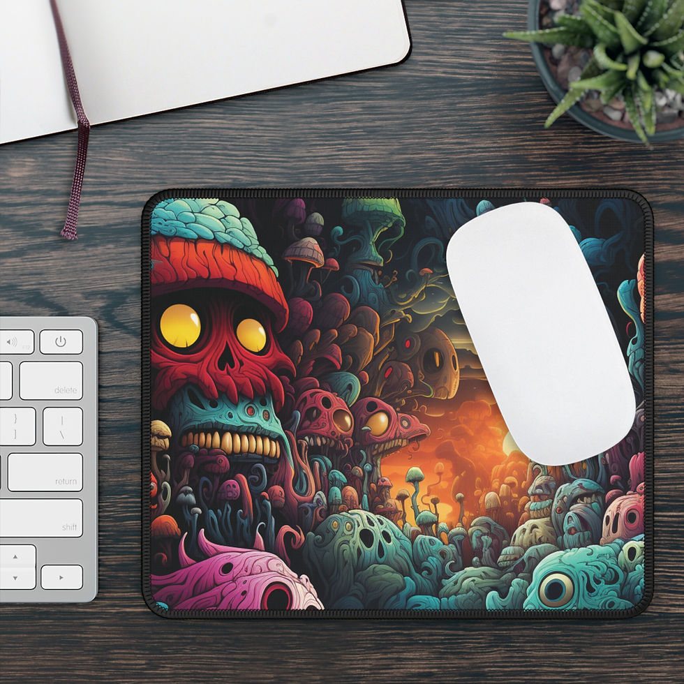 Psychedelic Monster Mousepad with Colorful Skulls and Horror Art